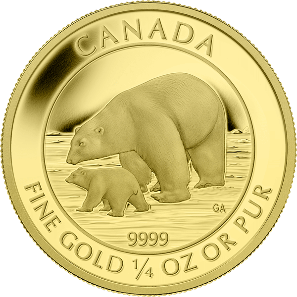 Part of the unique Canadian Wildlife series, the ¼ oz $10 Gold Polar Bear and Cub coins are 99.99% gold and are ideal for IRA investment because of their purity and smaller denomination. The ability of the Polar to survive in the harsh northern wilderness symbolizes the fortitude and resourcefulness of the Canadian people adapting to their rugged environment. Produced in a relatively small amount compared to other bullion coins, they also possess great potential for appreciation due to scarcity.