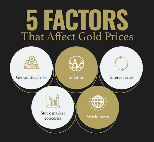 The price of gold is constantly changing. Some factors that affect gold prices are: