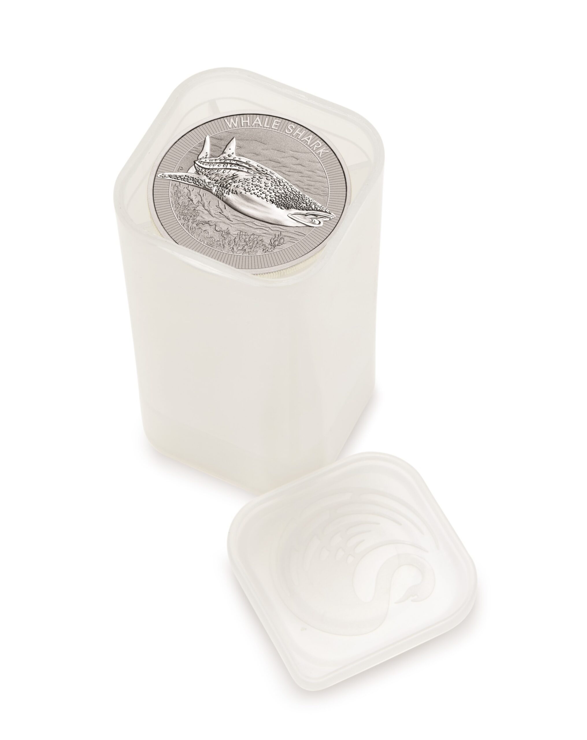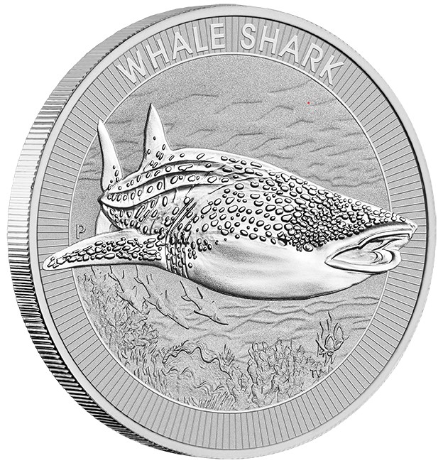 The coin’s reverse includes an Australian whale shark, the inscription ‘WHALE SHARK’, and The Perth Mint’s ‘P’ mintmark. The obverse bears The Queen Elizabeth II Memorial Obverse, featuring the Jody Clark effigy supplemented with the dates of her reign, and the monetary denomination