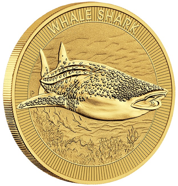 The coin’s reverse includes an Australian whale shark, the inscription ‘WHALE SHARK’, and The Perth Mint’s ‘P’ mintmark. The obverse bears The Queen Elizabeth II Memorial Obverse, featuring the Jody Clark effigy supplemented with the dates of her reign, and the monetary denomination